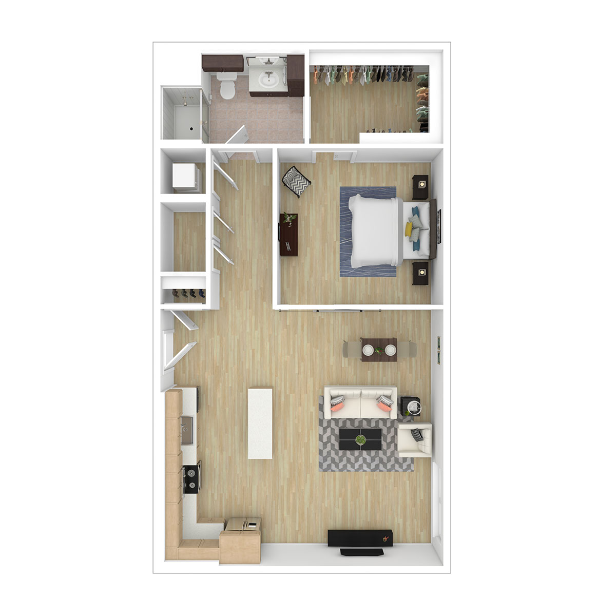 The apartments at Fox Howe are designed with comfort and function in mind. You'll find open floor plans with high ceilings, oversized windows, and plenty of natural light. Inside, each home features wood plank flooring, stainless steel appliances, stone countertops, and spacious bathrooms with step-in showers or tubs. Select layouts include double vanities and flexible space for a home office or reading nook.